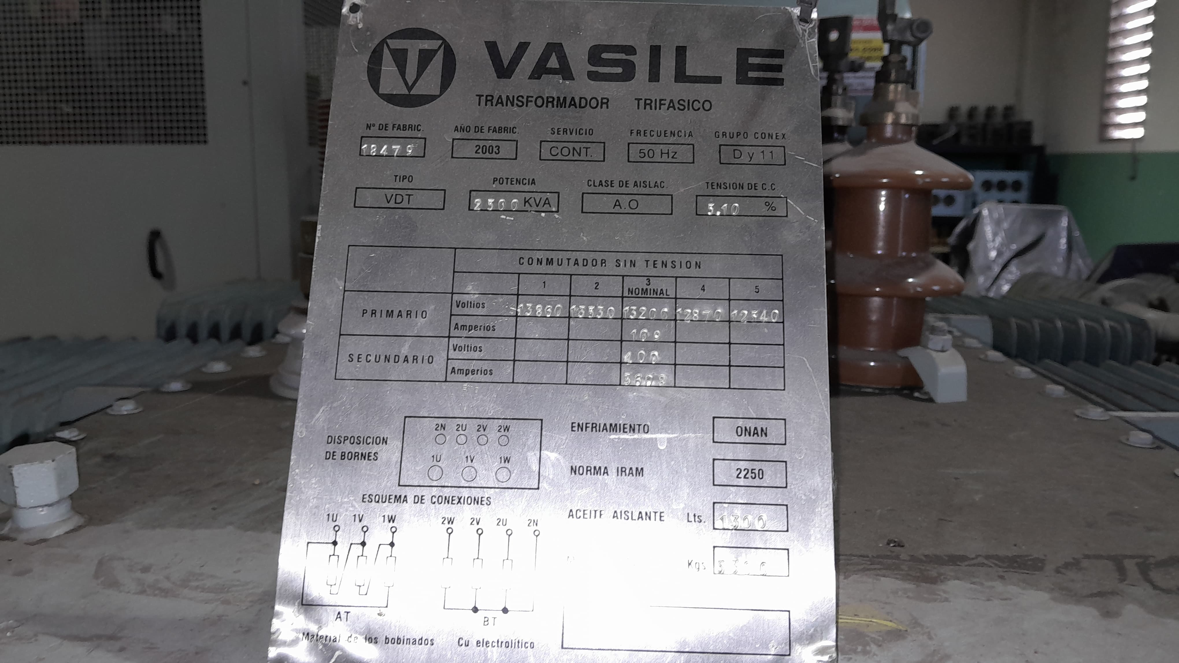 TRANSFORMADOR VASILE 2500 KVA - SE DESINSTALÓ EN FUNCIONAMIENTO EN 2022 - REFRIGERANTE EN CONDICIONES - NO SE ASISTE LA CARGA, EL ISAJE QUEDA A CARGO DEL COMPRADOR |