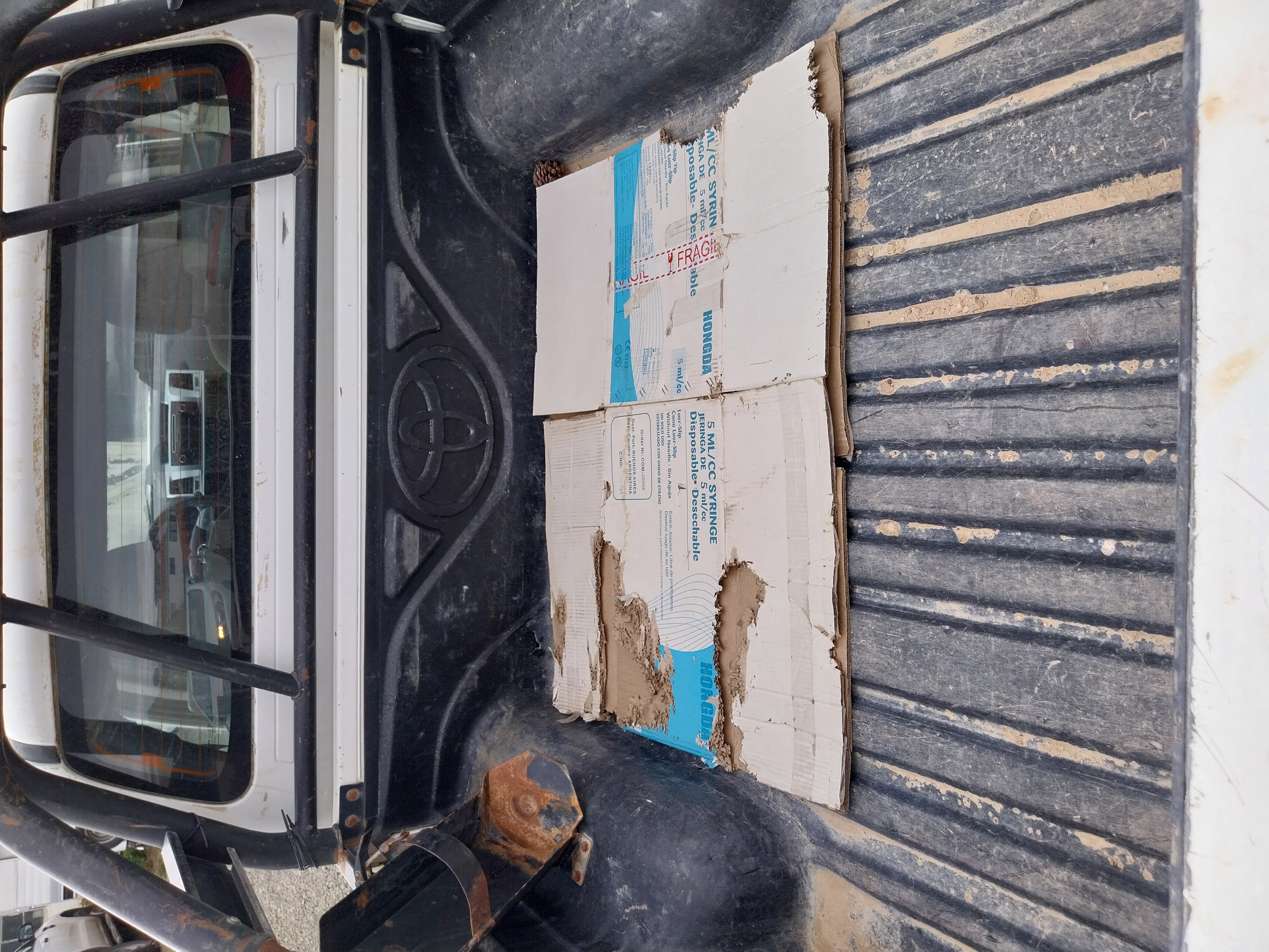 PARAGOLPE DELANTERO CON RAJADURA Y RASPON, BOLLO EN CAJA DE CARGA Y DETALLES DEL USO. |