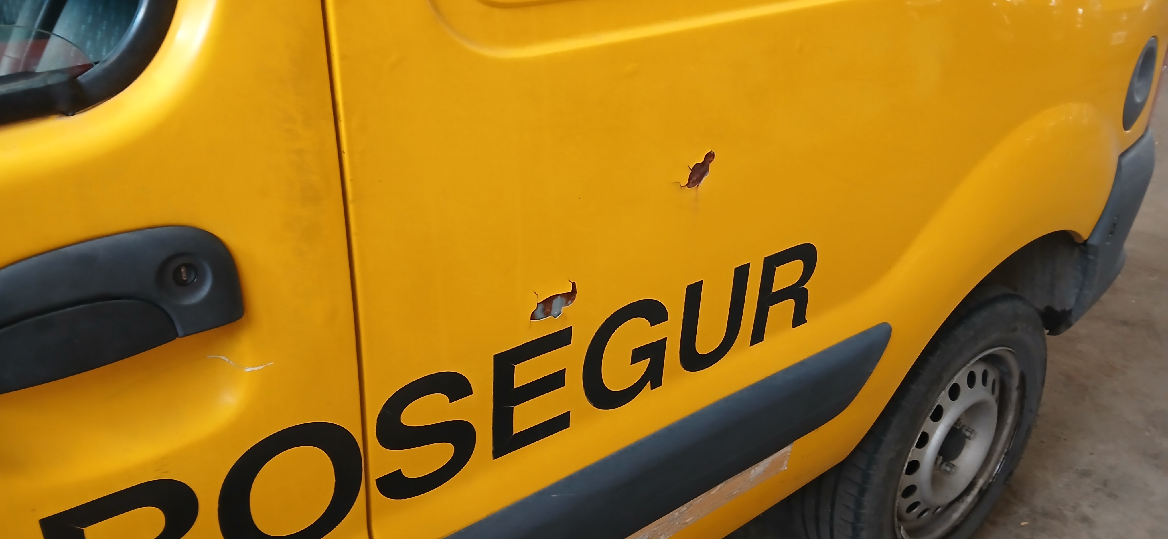 CAJA LADO IZQUIERDO OXIDO Y DESPRENDIMIENTO DE PINTURA, PORTON LATERAL CON GOLPE |