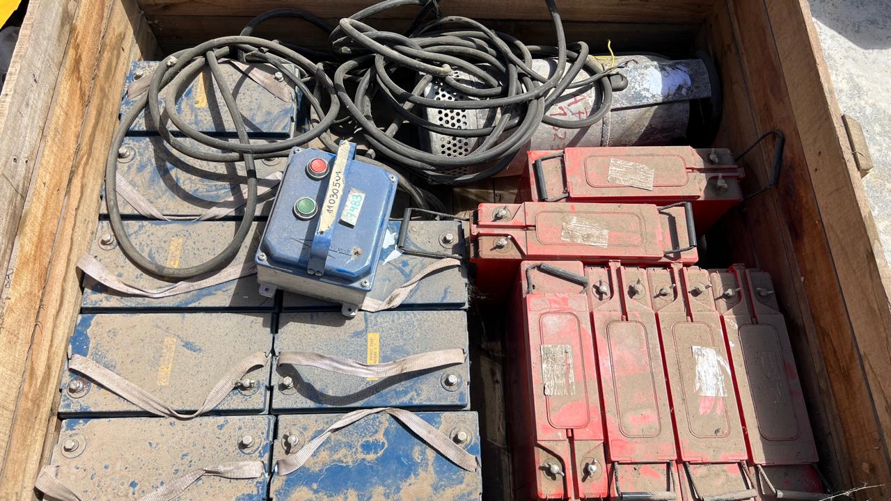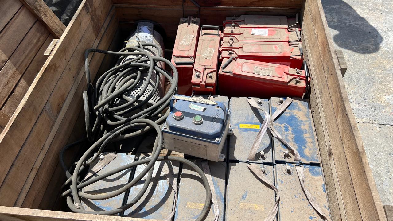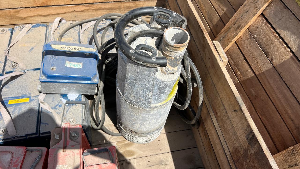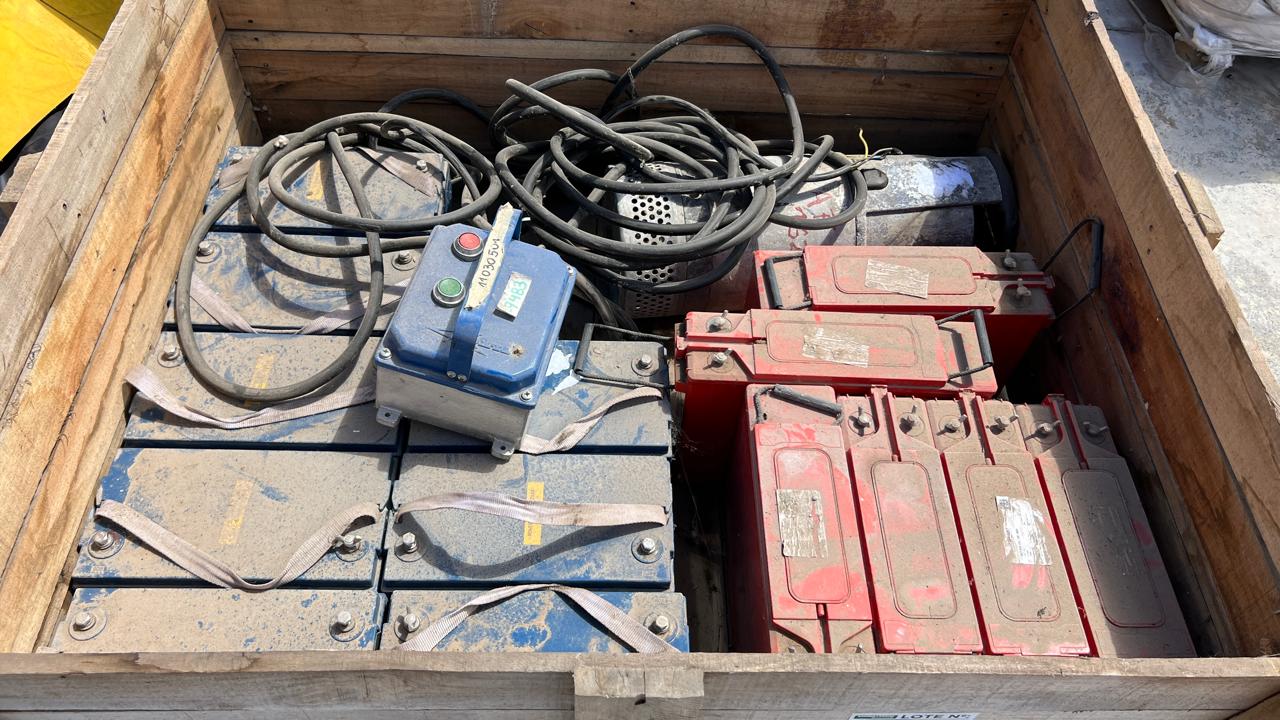 BOMBA SUMERGIBLE CON CUERPO EN INOX. FLYGT, MOD. 2620172, MOTOR CAP. 2,2 KW., CON CABLE Y TABLERO Y 14 APROX. BATERÍAS, (8 VISÓN, MOD. SP 12 -100, DE 12,8V 100AH Y 6 POWER SAFE, MOD. SBS 100F, DE 12V 100AH) |