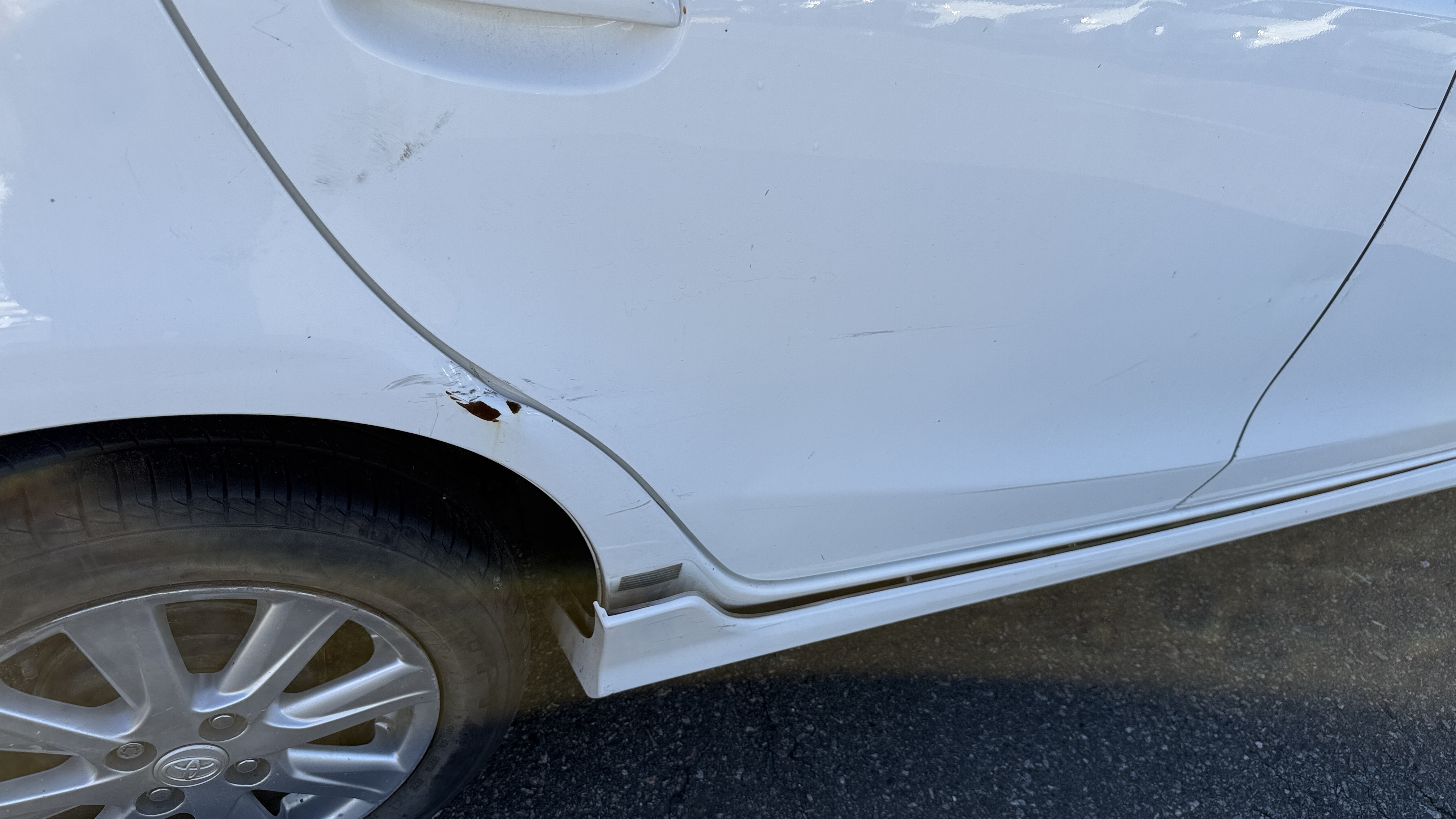 PARAGOLPE TRASERO SUELTO Y CON RAYONES, GOLPES LADO DERECHO, CUBRE ZÓCALO SUELTO, DETALLES VARIOS |
